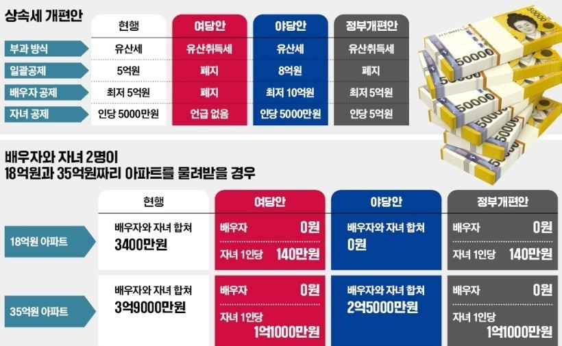 ◇민주 '18억까지 면제'에…국힘 "배우자 상속세 폐지"