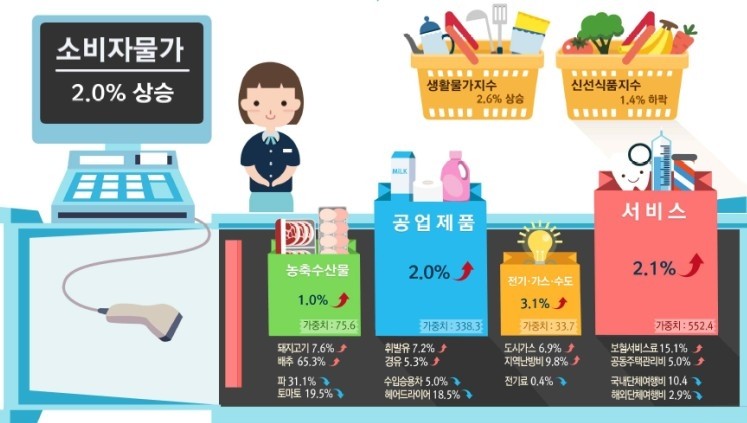 ■ 소비자물가 상승률이 두 달째 2%대를 기록했습니다. 농산물은 소폭 하락한 반면, 수산물은 비교적 큰 폭으로 올랐습니다.
