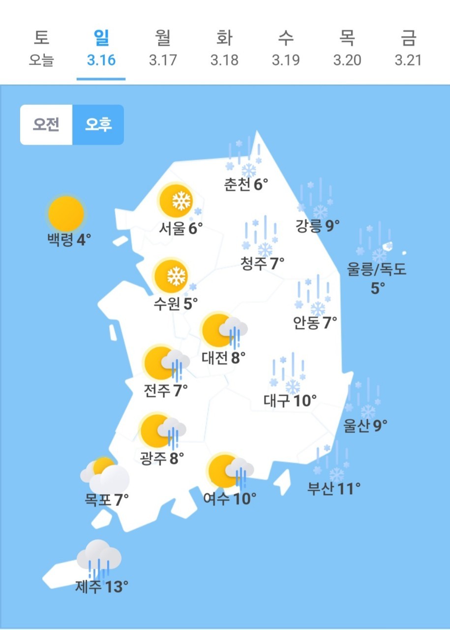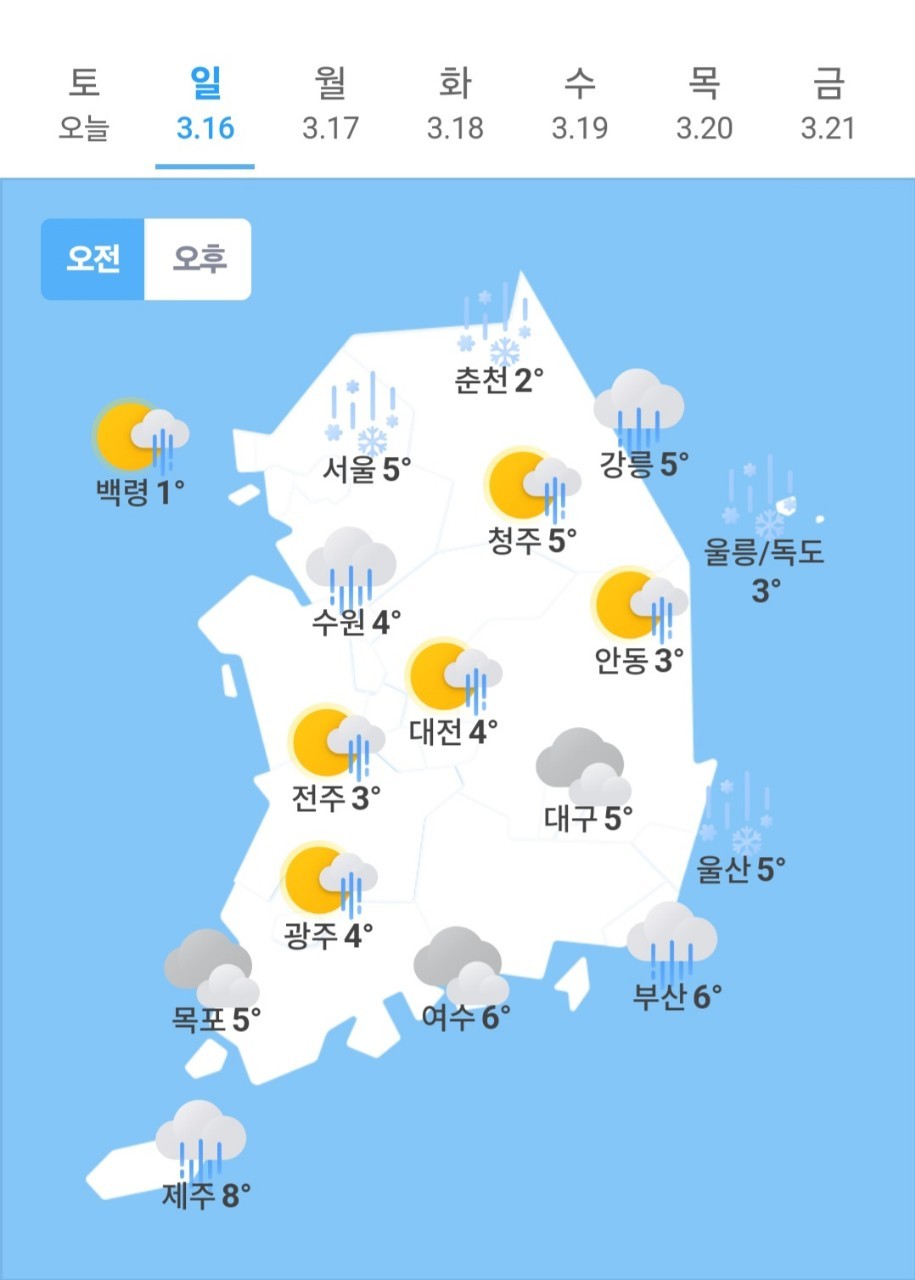 ✫청주(🌧)➠(🌦/⛄) 5℃ ~ 7℃