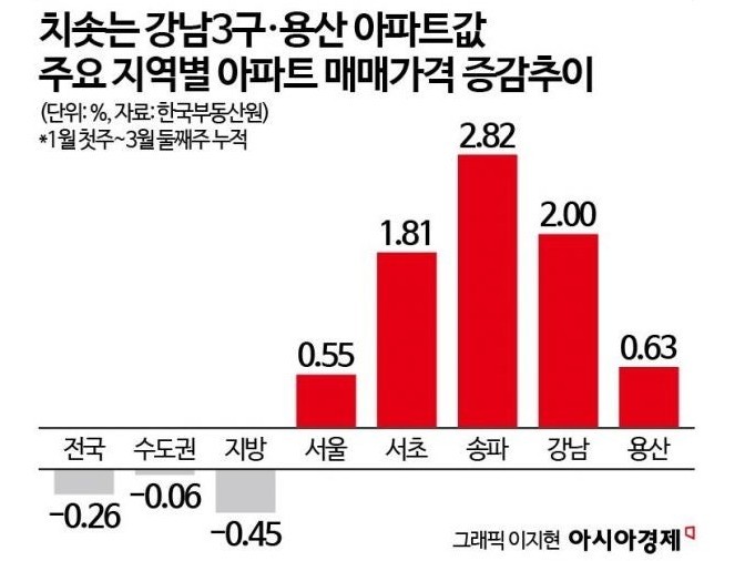 ◇올 3개월 집갑 추이. 서울 강남권만 오르고 수도권, 지방은 하락