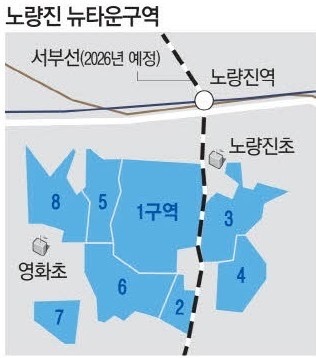 최근 재개발 조합원 입주권을 비롯한 신축 아파트 가격이 급등하고 거래도 늘고 있는 노량진뉴타운 1구역 일대 전경. <김호영 기자>