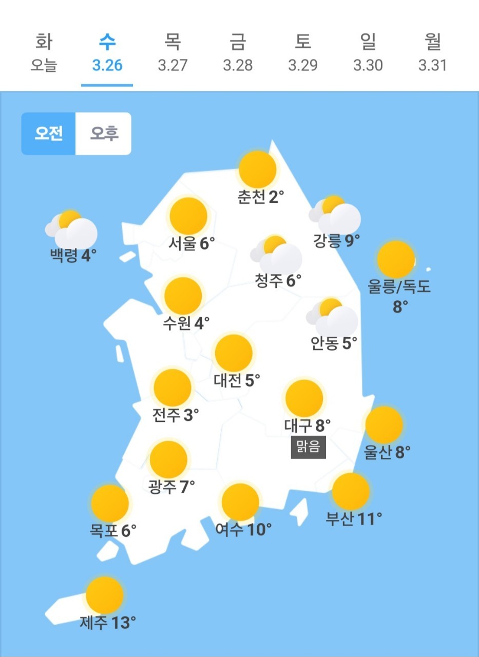 ✫대구(☀)➠(⛅) 8℃ ~ 25℃
