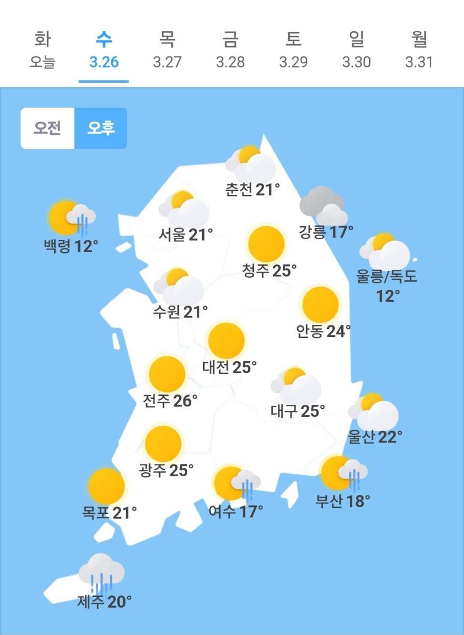 ✫전주(☀)➠(☀) 7℃ ~ 26℃