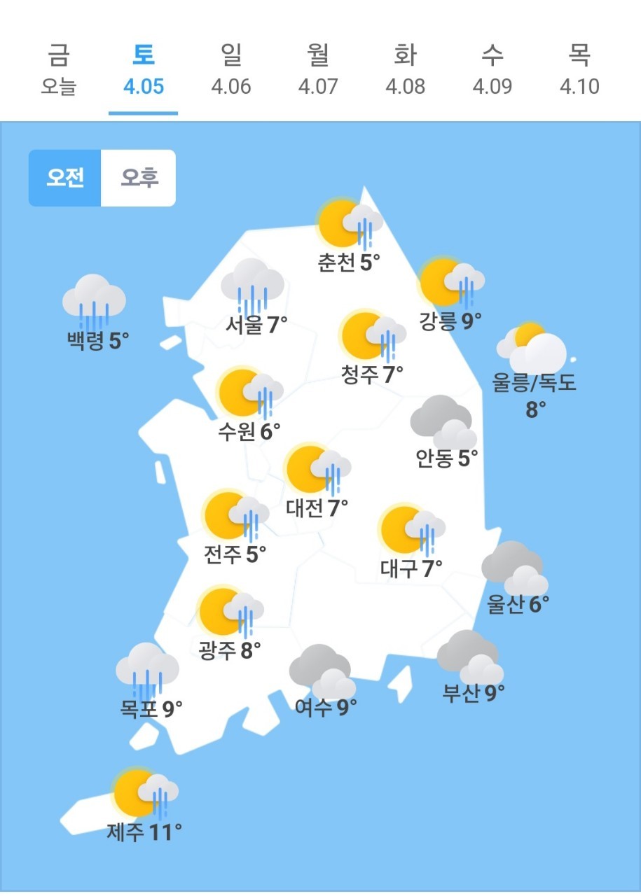 ✫춘천(🌧)➠(☔) 5℃ ~ 12℃