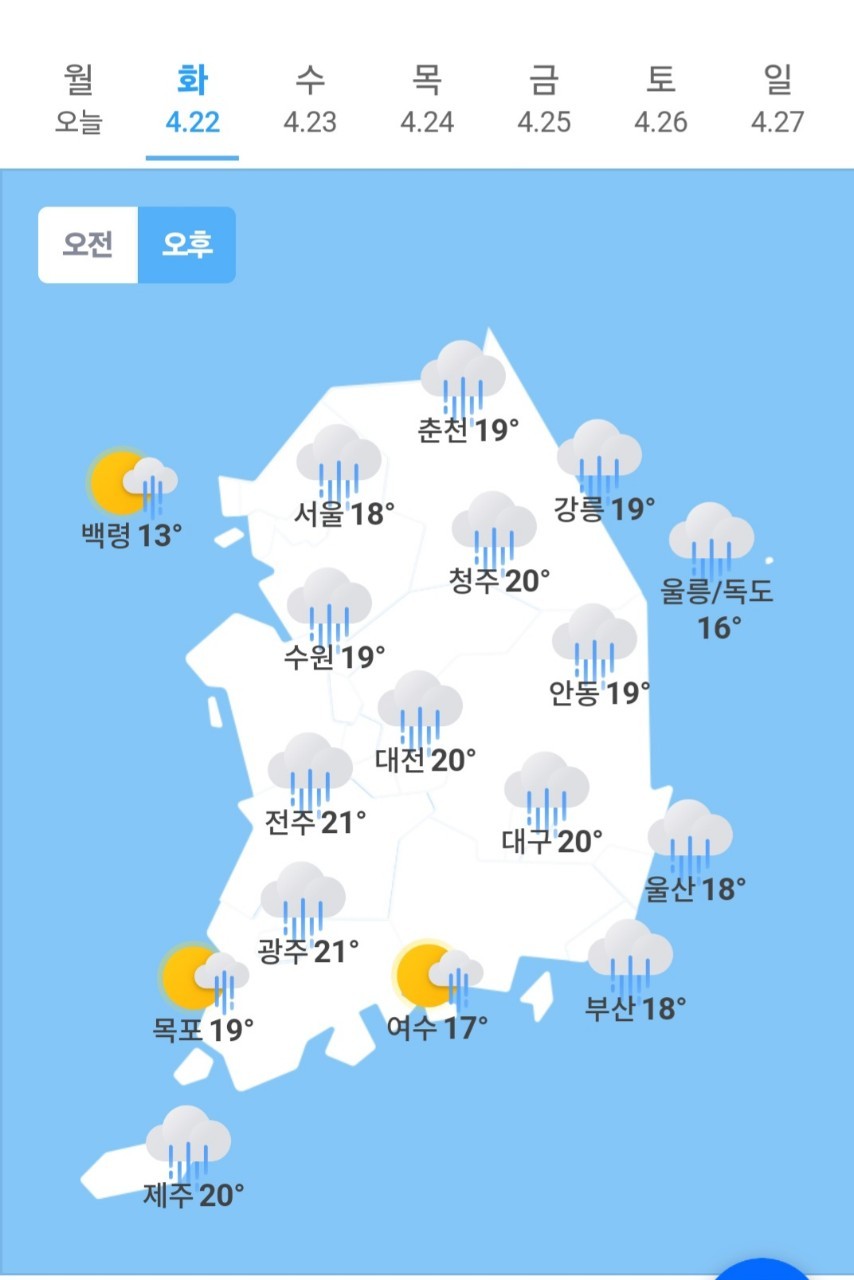✫제주(☔)➠(🌧) 18℃ ~ 22℃
