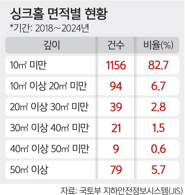 싱크홀 평균 크기는 30.9㎡, 평균 깊이는 1.3m로 달리는 차량이 빠지면 사고로 이어지기에 충분. (세계)