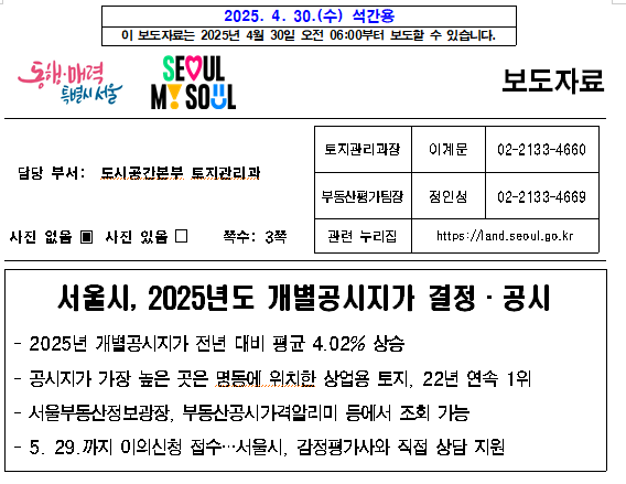 연도별 개별공시지가 변동률(2021~2025년). (제공: 서울시)