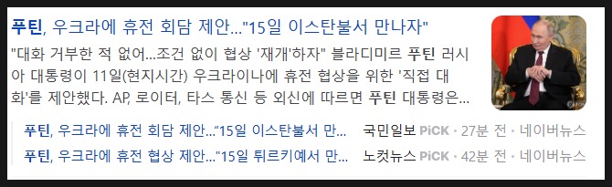 → 푸틴 기자회견서 '15일 이스탄불서 만나자, 조건없이 협상, 휴전 합의할 수도 있다' 제안.