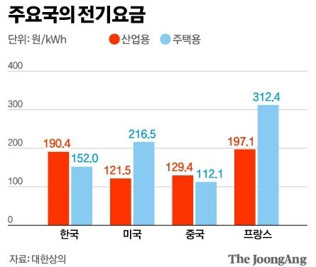 20일 미국 에너지청(EIA)과 한국전력 등에 따르면 루이지애나의 산업용 전기요금은 ㎿h당 51.1달러(약 7만7260원)로, 최근 산업용 전기료가 급격하게 오른 한국의 절반 수준에 불과하다.