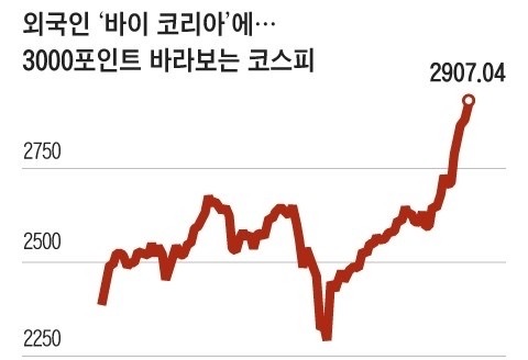 2900선을 돌파한 것은 지난 2022년 1월 14일 이후 3년 5개월만이다.
