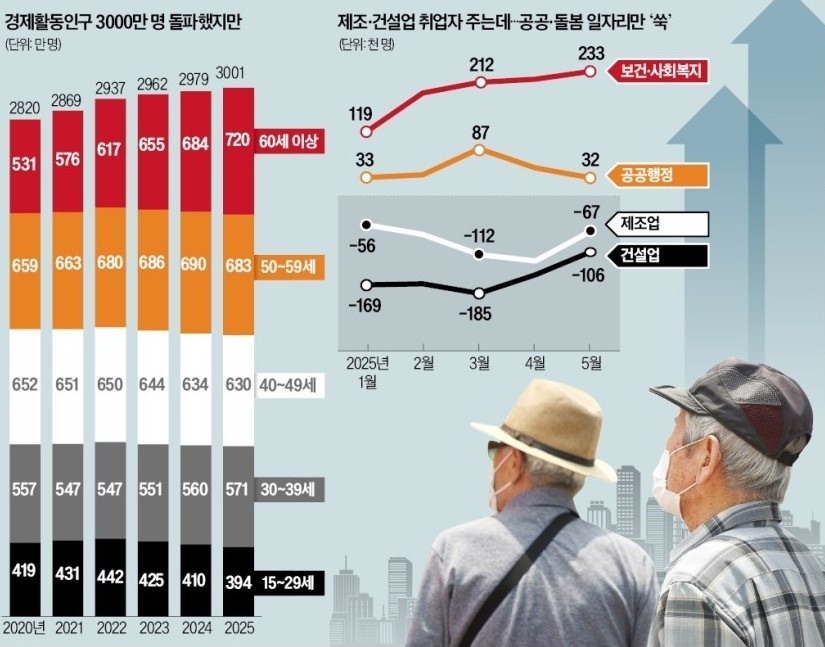 ■ 지난달 취업자 수가 13개월 만에 가장 큰 폭으로 증가했지만, 건설·제조업 분야에선 여전히 부진이 이어졌습니다. 특히 60세 이상 취업자는 처음으로 700만 명을 넘어서며 고령 노동이 뚜렷해졌습니다.