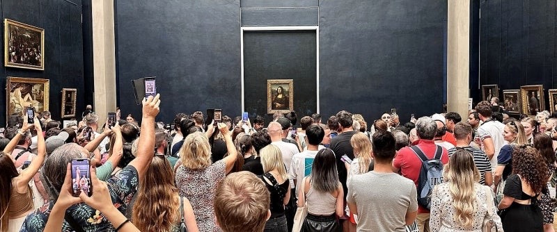 길게 늘어선 줄에 차분한 감상은 꿈도 못 꾸고 보안을 이유로 거리를 둬야해 모나리자가 벽에 걸린 우표처럼 보인다는 비아냥까지 쏟아진다...(경향)