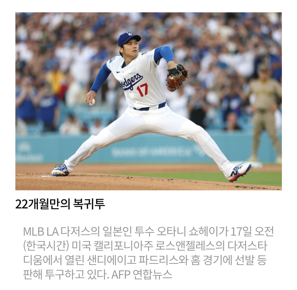 2. 돌아온 ‘이도류’ 오타니, 22개월 만에 1번타자 겸 선발투수 등판 →