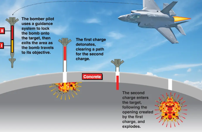 → '벙커버스터'급 초대형 관통 폭탄은 최대 60m 이상의 콘크리트를 뚫을 수 있다.