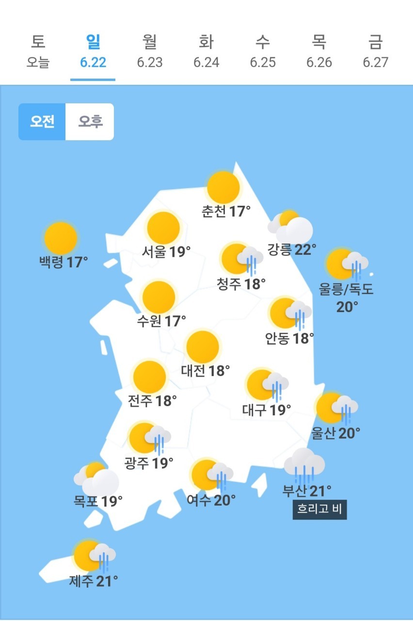 | 오늘의 날씨 🌞☔️☃️ , 2025년 6월 23일 월요일 (0) | 2025.06.22 |