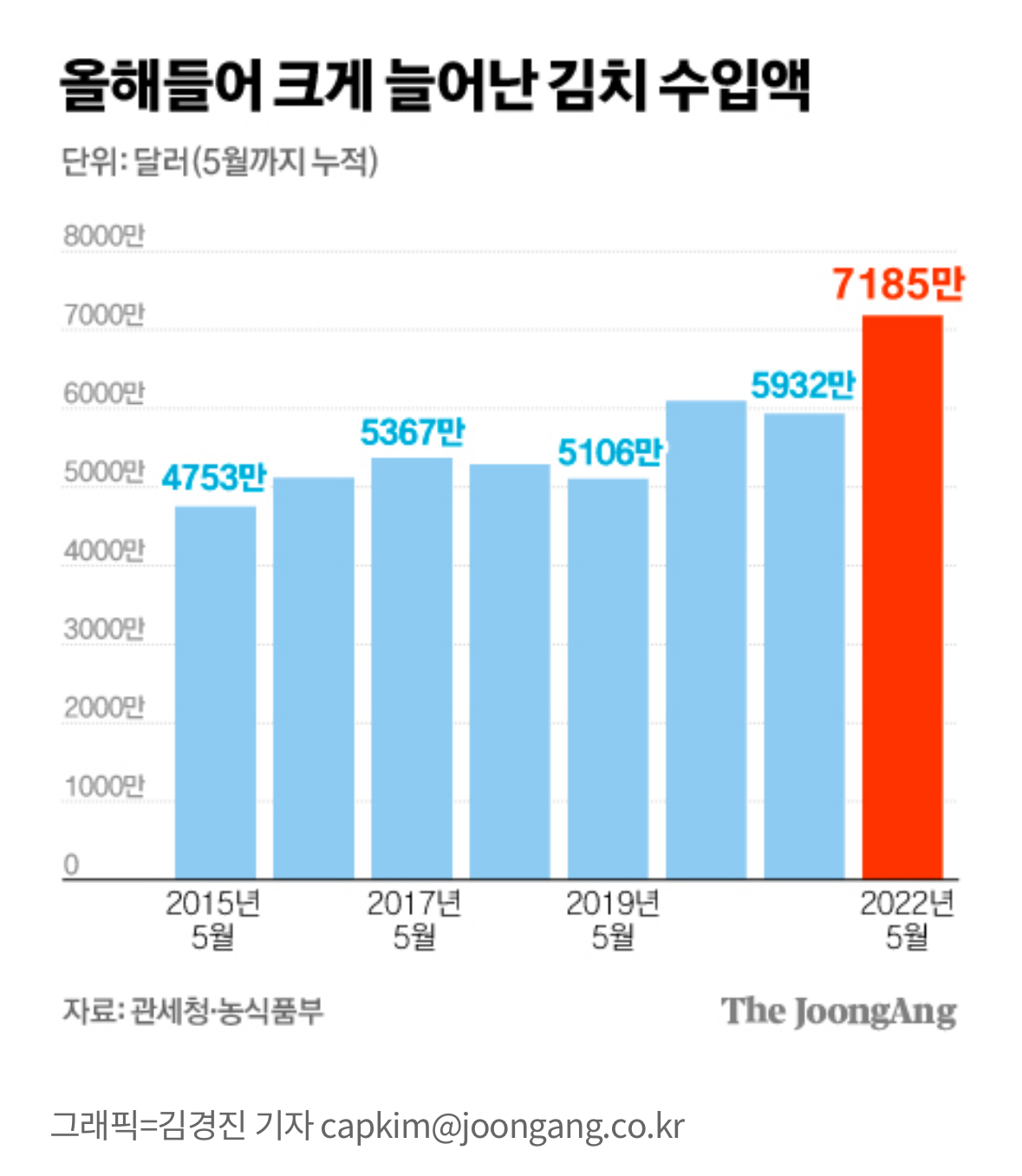 → 1/4 가격… 1~5월 김치 수입량 전년 대비 9.7% 증가,