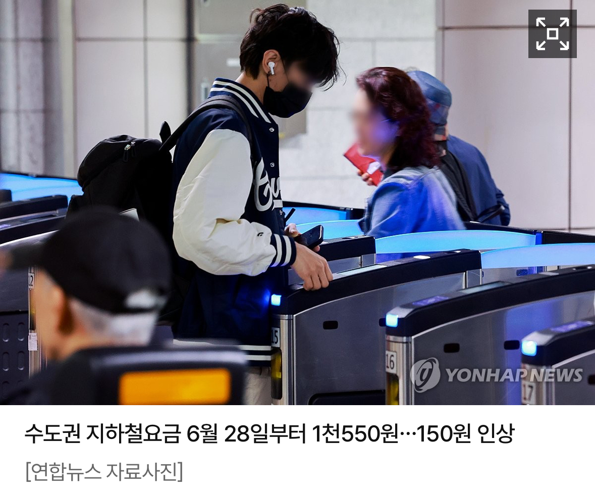 7. 서울·수도권 지하철 요금, 28일 첫차부터 150원 인상