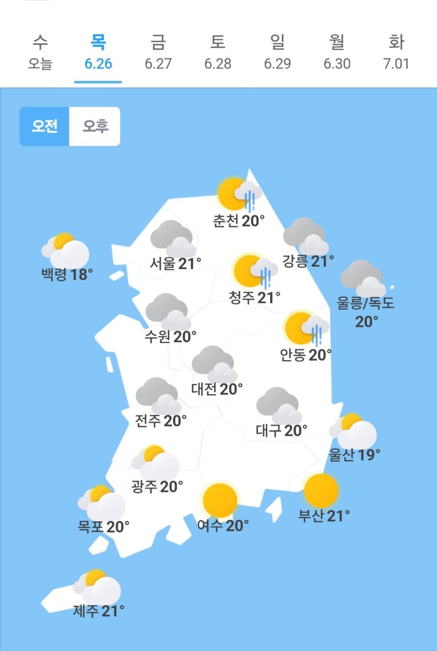 ✫청주(🌦)➠(☁️) 21℃ ~ 28℃