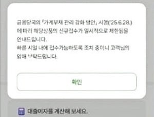 29일 한 시중은행 모바일 앱에 비대면 대출 접수가 중단됐다는 알림창이 떠 있다. /은행 모바일 앱 캡처
