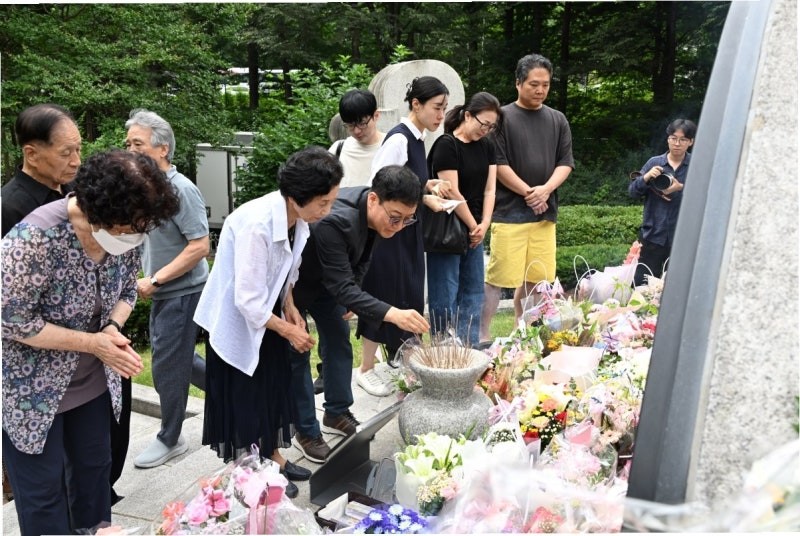 권노갑 김대중재단 이사장이 지난 12일 서울 마포구 연세대학교 김대중도서관에서 열린 6.15 남북정상회담 25주년 기념식에서 박수를 치고 있다. /연합뉴스