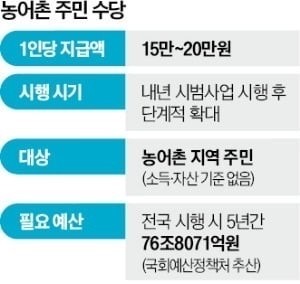 → '농어촌 주민수당' 내년 시범 도입. 시범사업 대상 인구감소 지역에 거주하는 모든 주민 대상.