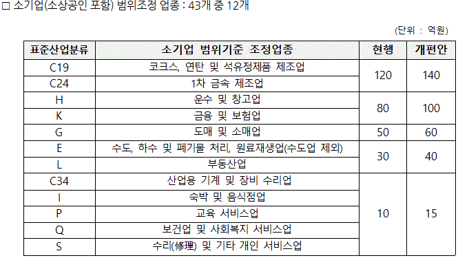 ▷ 1,800억 이하 업종=1차 제조 등 1,500 억 업종의류 등