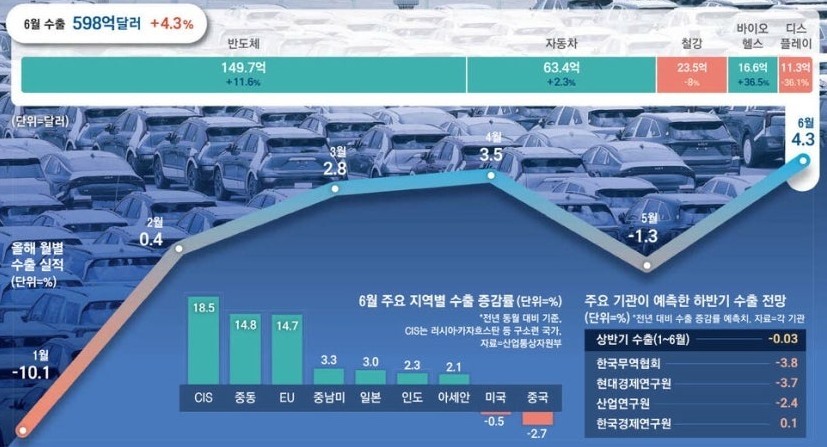 ◇6월 수출 598억달러 사상최대