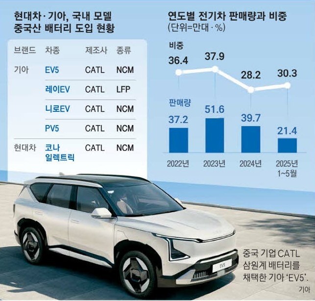 ◇기아 EV5에 中 CATL 배터리