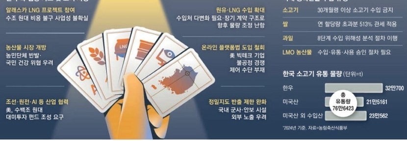 ■ 에너지·조선 협력에 만족못한 美 … "쌀·소고기 개방하라" 압박