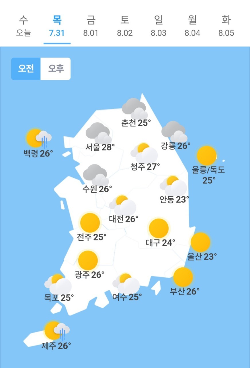✫서울(☁️)➠(☁️) 28℃ ~ 36℃