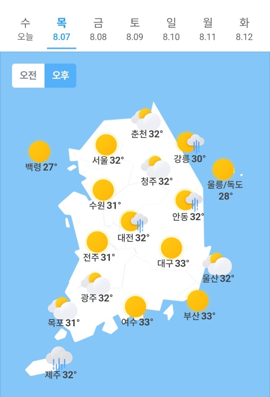 ✫대구(🌧)➠(☀) 25℃ ~ 33℃