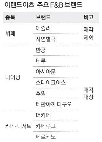 자회사 이랜드이츠가 전개하는 브랜드 중 9개가 시장에 매물로 나왔습니다.