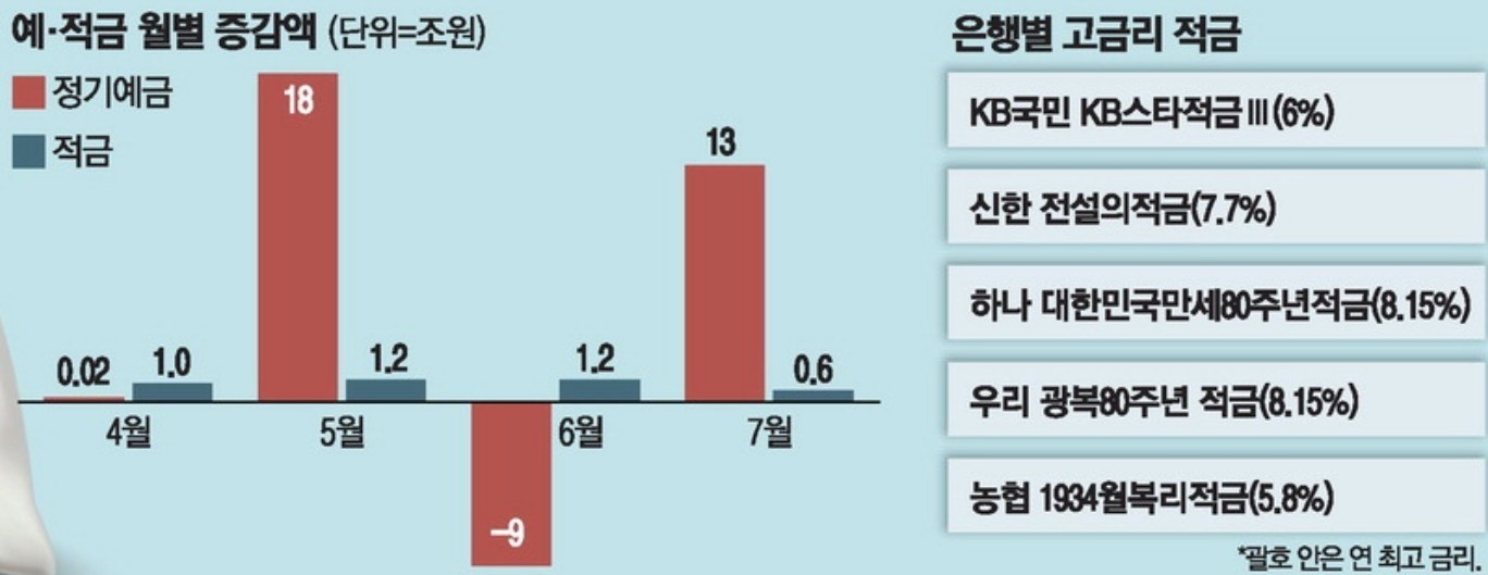 5. "금리 떨어지기 전에"…7월 예금 13조 급증