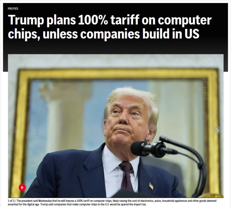 3. 결국... 트럼프 '외국산 반도체 100% 관세'