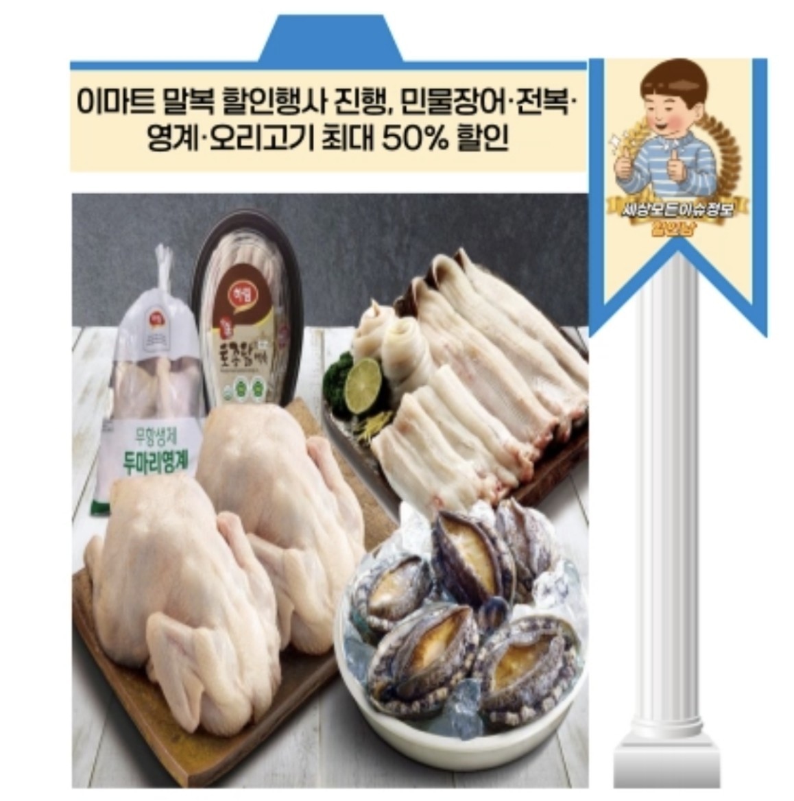 롯데마트는 닭, 돼지고기, 전복 등 복날 대표 식재료를 최대 50% 할인,