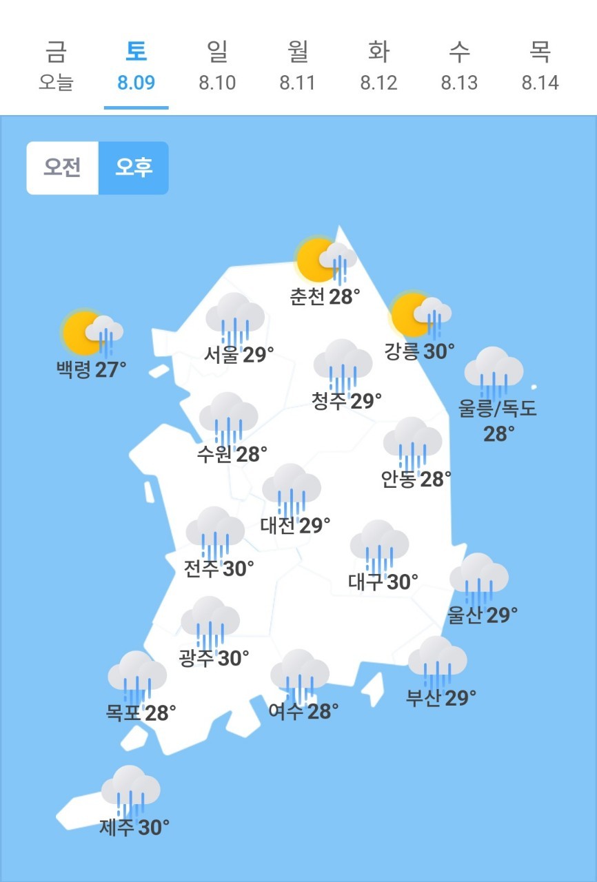 ✫서울(🌧)➠(☔) 25℃ ~ 29℃