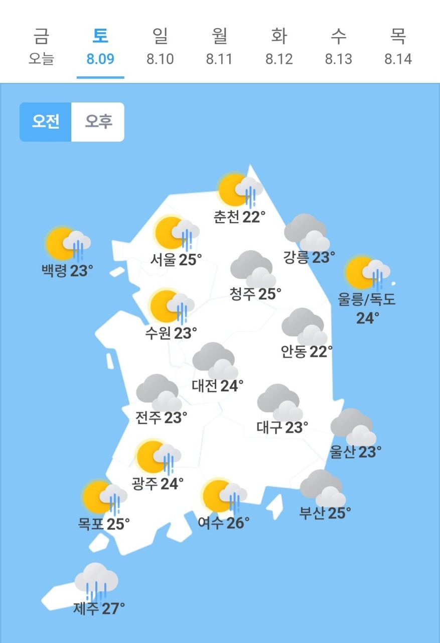 ✫세종(☁️)➠(☔) 23℃ ~ 28℃