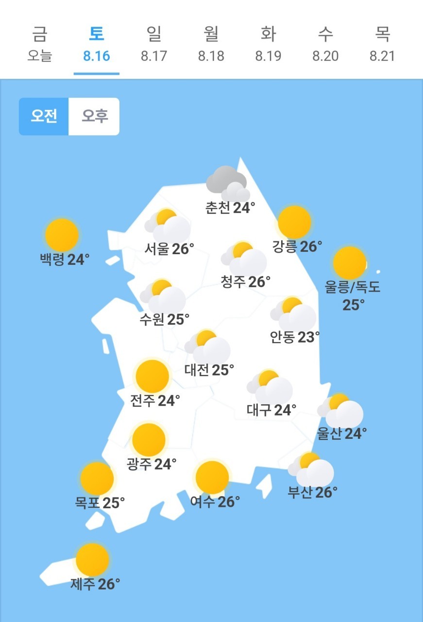 | 오늘의 날씨 🌞☔️☃️ , 2025년 8월 17일 일요일 (0) | 2025.08.16 |