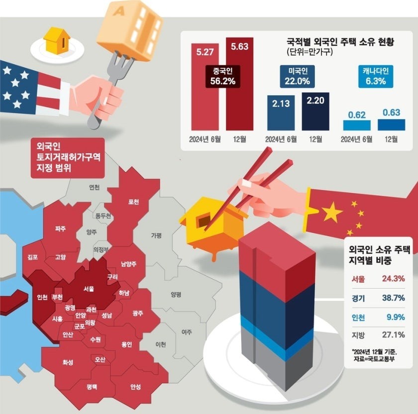 1. 정부가 서울 전역과 경기, 인천 주요 지역을 ‘외국인 토지거래 허가구역’으로 지정하기로 했습니다.