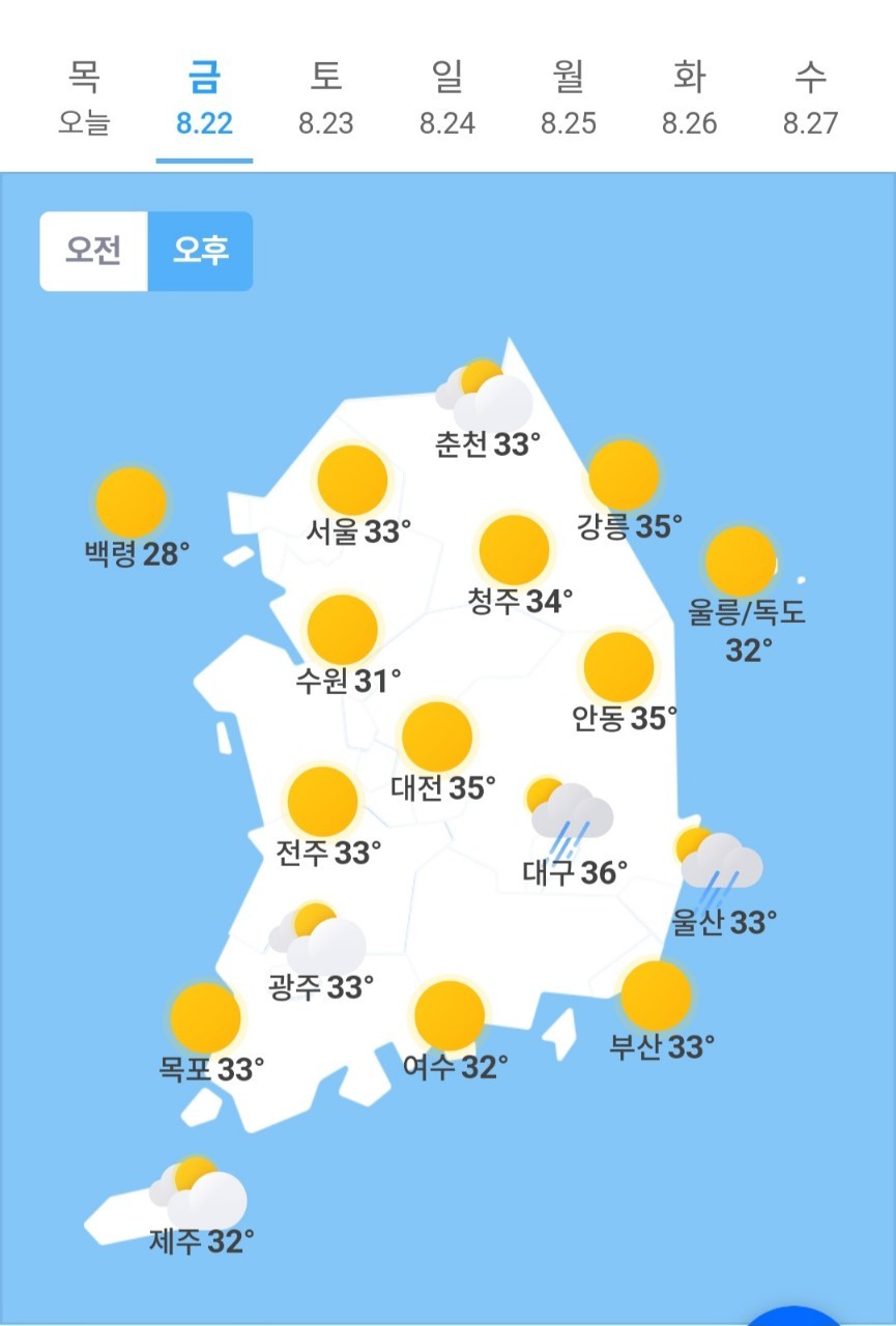 ✫대구(☀)➠(⛈) 25℃ ~ 36℃