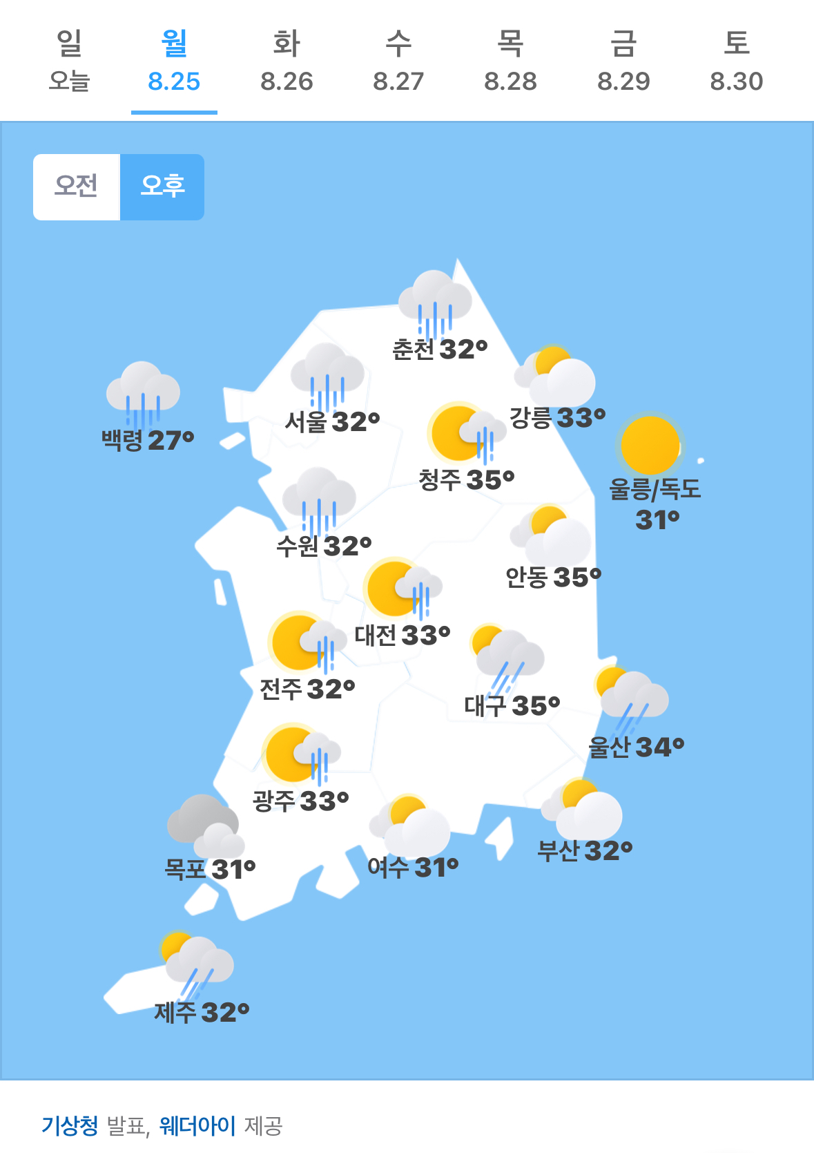 ✫청주(☁️)➠(🌦) 26℃ ~ 35℃