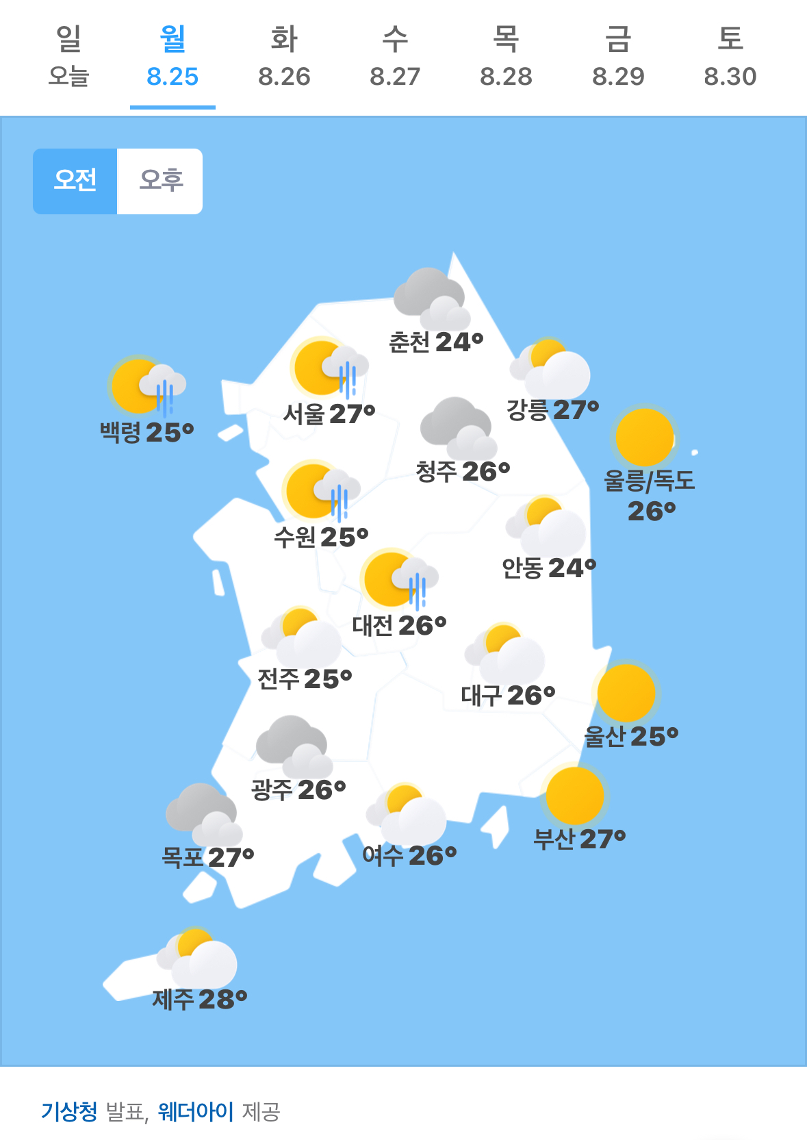 | 오늘의 날씨 🌞☔️☃️ , 2025년 8월 22일 금요일 (0) | 2025.08.22 |