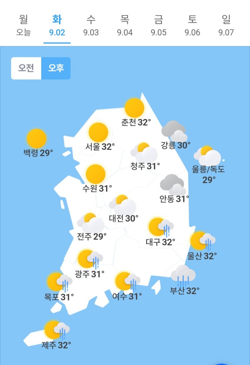✫울산(🌦)➠(🌦) 24℃ ~ 32℃