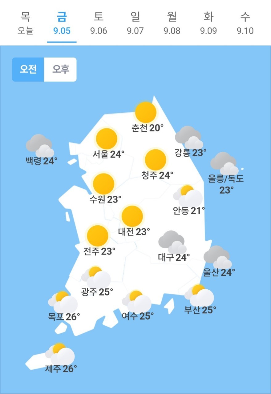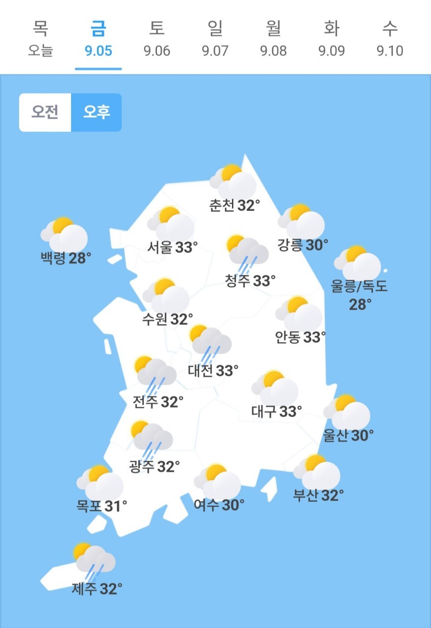 ✫서울(☀)➠(⛅) 24℃ ~ 33℃