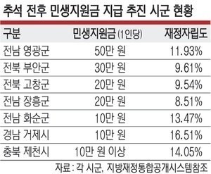 → 1인당 전남 영광 50만원, 전북 부안 30만원, 전북 고창. 전남 장흥 20만원, 화순 10만원,.. 곳곳서 추진.