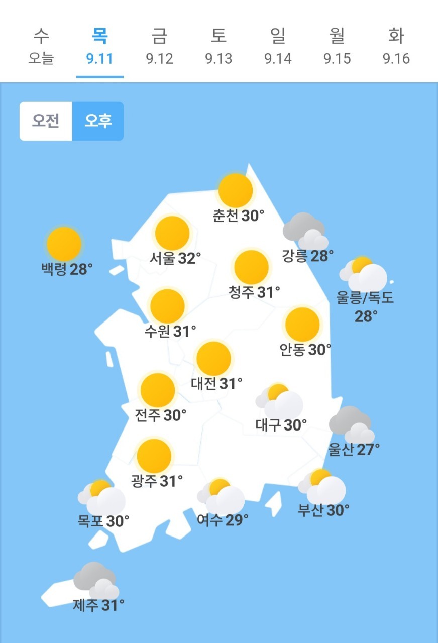 ✫서울(☀)➠(☀) 20℃ ~ 32℃