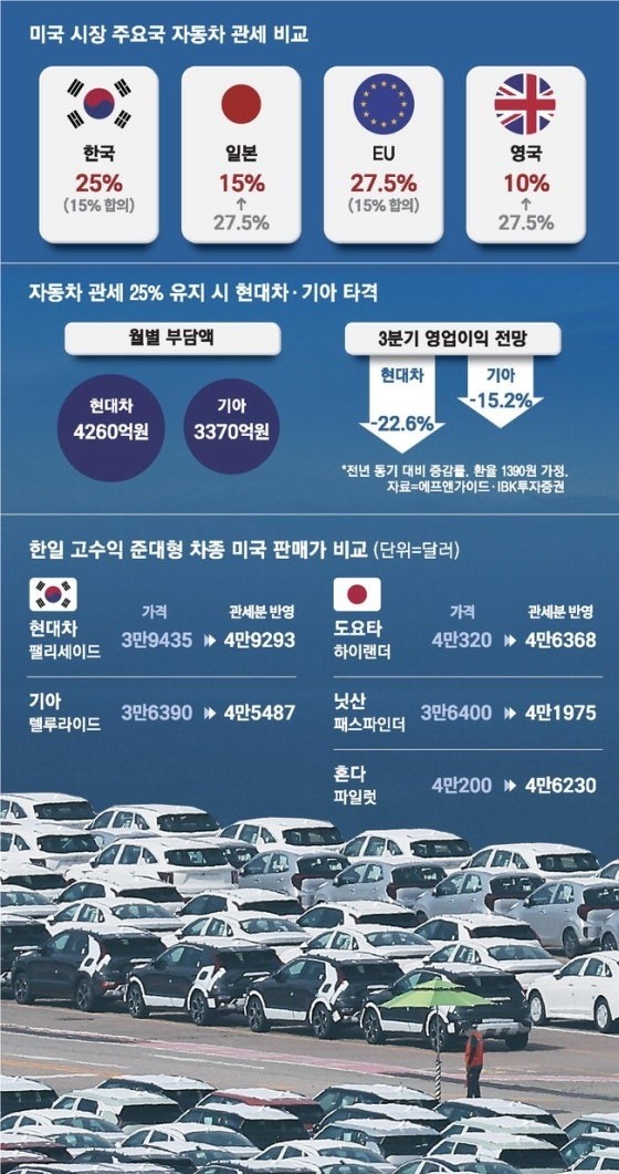 3. 한일 자동차 관세율 역전과 한미 관세협상 교착 상황이 장기화할 전망입니다.