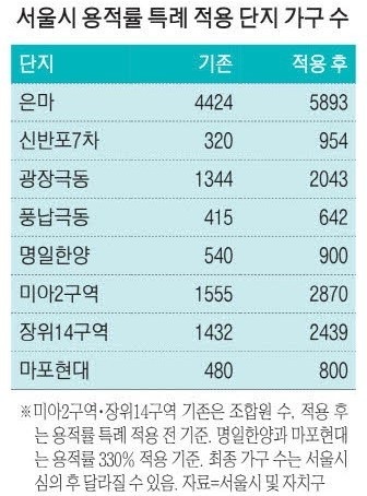 용적률 특혜를 받아 상한 용적률을 뛰어넘는 첫 단지는 은마아파트가 될 것으로 보입니다.
