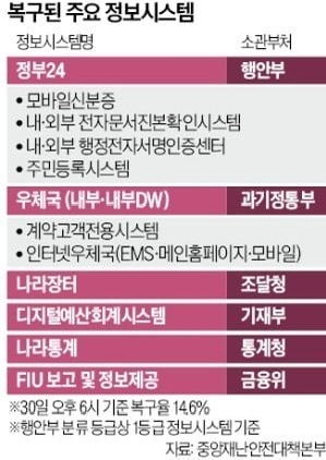 화재로 멈췄던 정부전산 시스템 복구가 이어지는 가운데 다수 기관과 연계된 일부 시스템은 시간이 더 소요될 것으로 예상됩니다.