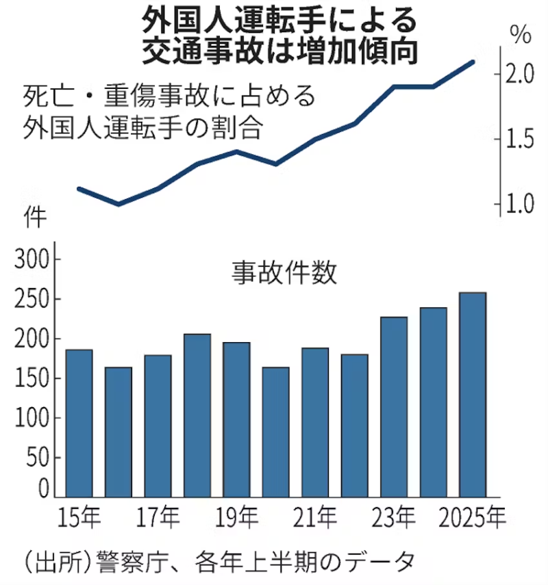사망 중상 사고에서 외국인이 비중이 2016년 1%에서 2024년 2.1%로 늘어나는 등 외국인 사고가 늘고 있기 때문이라는 설명.(경향)